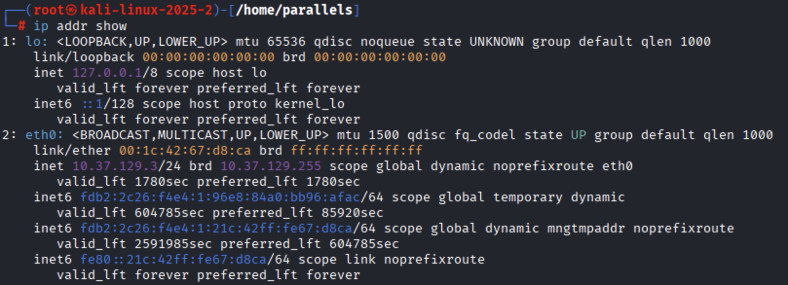 Preparation: Configure Kali VM adapter: