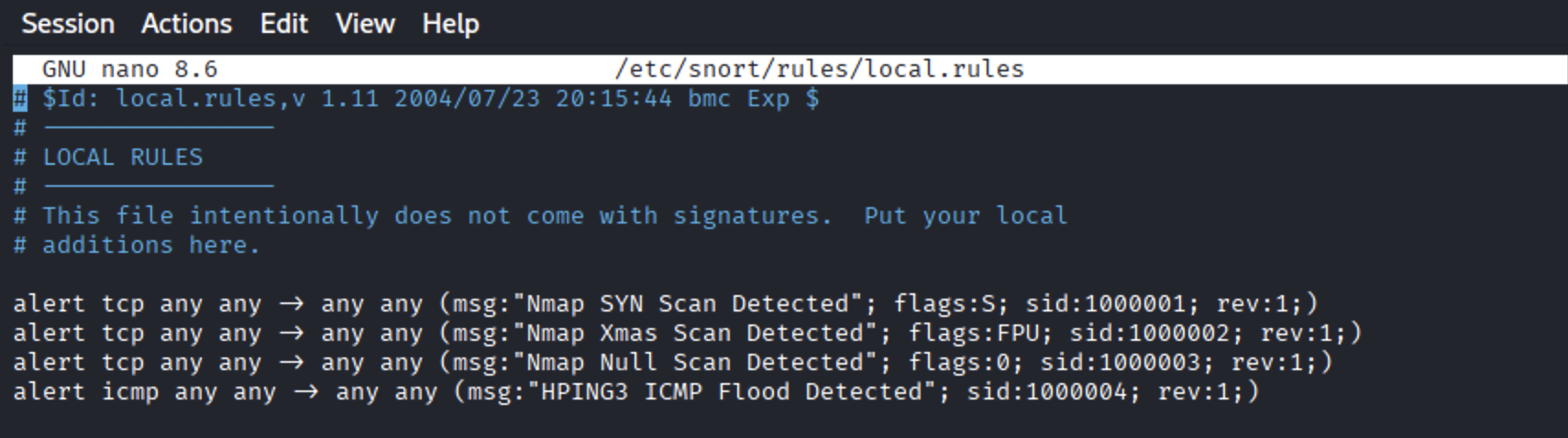 Create or edit the local.rules file where your custom detection rules will be stored: