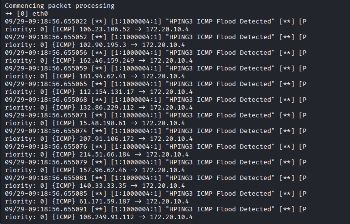 If the rules are correctly configured, you should see alerts in the Snort console.